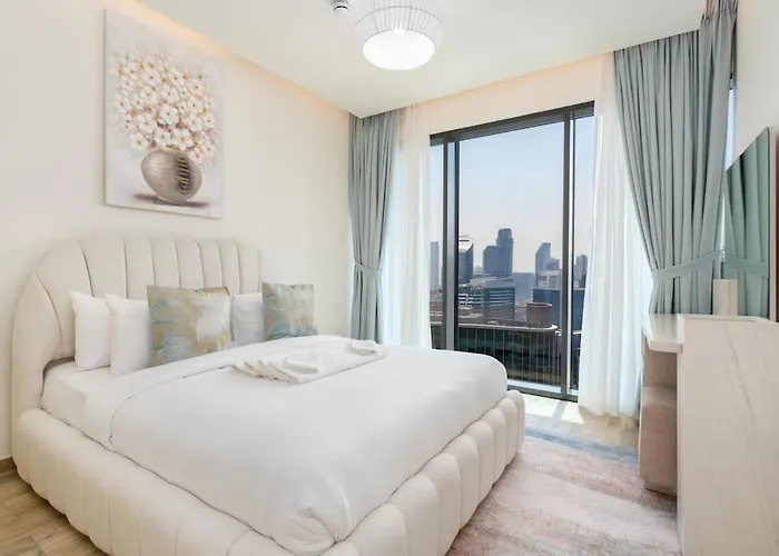 تقع 1 Bedroom - Ahad Residence - Business Bay - Dubai المكونة من 1 غرفة نوم على بُعد 19 دقائق مشياً على الأقدام من برج خليفة، وتوفّر للضيوف الواي فاي للعمل أو الترفيه. كما يضمن وجود المسبح إقامة مريحة.